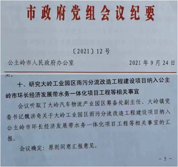 根据相关文件,此次事件的源头可追溯至2020年11月,当时公主岭市为应对环保检查的“特事特办”,为快速推进雨污分流改造工作,当地政府以会议纪要形式作出专项决策:将该雨污分流工程不再履行单独招标程序,而是并入已完成招标的环长水务一体化工程项目中,同时取消原招标项目中的污水处理水厂建设内容,直接变更为雨污分流施工。