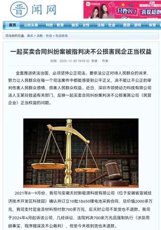2021年8—9月份,我司与安徽天时新能源科技有限公司(位于安徽省宣城经济技术开发区科技园)确认并订立10批18650锂电池采购合同,总价值2000多万元,我司支付定金及材料预付款700多万元,后天时公司不发货也不退款。我司于2024年4月起诉该公司,几经诉讼,法院判决700余万元且强制执行(涉及罔顾事实、程序错误及不公裁判),但至今未收到货也未退款。