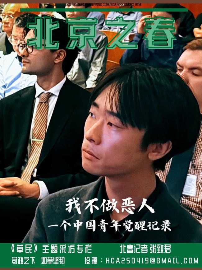 原文标题:《人物采访“我不做中共政权下的恶人“中国青年觉醒记录》