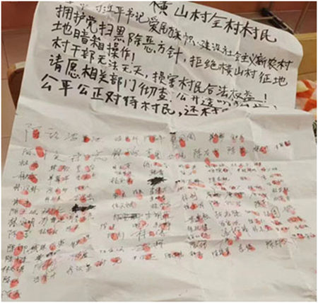 2020年3月,村民们把反映材料交给省信访部门。省信访部门转给滨海新区,迟迟没有处理结果。横山村土地、土地确权证一事,被以各种理由推三推四没办理,陈某金说到2028年才办理。